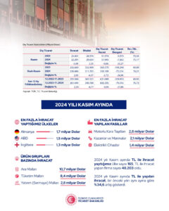 Ticaret Bakanlığı, Kasım ayına ilişkin dış ticaret verilerini yayımladı.