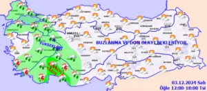 Meteoroloji Genel Müdürlüğü 3 Aralık Salı gününe ilişkin hava tahmin raporunu yayımladı.