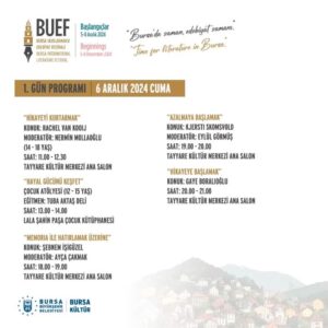la başlayan her yeni yolculuğa hep birlikte çıkacağız. Festivalin gerçekleşmesinde emeği geçen herkese teşekkür ediyorum. Festivalimizin unutulmaz anlarla dolmasını diliyorum. Bursa, her zaman edebiyatın, sanatın ve kültürün kenti olacak. Gelecek yıllarda bu festivalin, Bursa’nın kültür ve sanat takviminde kalıcı bir yer edinmesini, tüm dünya edebiyatseverlerini buluşturan bir adres olmasını hedefliyoruz” dedi.