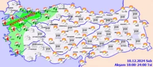 Yağışların; Marmara ve Kuzey Ege kıyıları ile Düzce, Zonguldak ve Bartın çevrelerinde yerel kuvvetli olması bekleniyor. Sabah ve gece saatlerinde ülkemizin iç ve doğu kesimlerinde buzlanma ve don olayı ile birlikte pus ve yer yer sis bekleniyor.