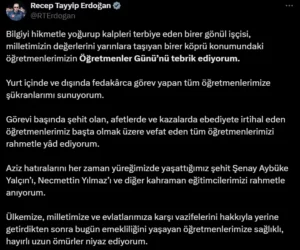 Cumhurbaşkanı Recep Tayyip Erdoğan, 24 Kasım Öğretmenler Günü dolayısıyla bir mesaj yayımladı.