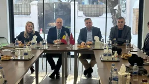 Romanya’da bir dizi temaslarda bulunan BALKANTÜRKSİAD Heyeti, ilk olarak Türkiye’nin Bükreş Büyükelçisi Özgür Kıvanç Altan‘ı ziyaret etti, Romanya Ticaret Bakanı Başdanışmanı Sebahat Kaya ile ekonomik iş birliği konularını, Romanya Türk İş Adamları Derneği üyeleriyle de karşılıklı ticaret imkanlarını görüştü.