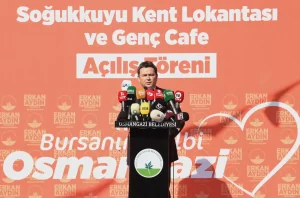 Osmangazi Belediye Başkanı Erkan Aydın, Kent Lokantası ve Genç Kafe’nin açılış töreninde yaptığı konuşmada, bu projeleri hayata geçirmek için yoğun çaba harcadıklarını belirterek; “Bu mekanın temini için büyük uğraş verdik, hatta birkaç kez Ankara’ya gitmemiz gerekti. Seçim sonrası muhtarımıza verdiğimiz sözü tutarak bugün bu tesislerin açılışını gerçekleştiriyoruz. Bursa’da hizmete sunduğumuz ilk lokantamıza Halk Lokantası adını vermiştik, ancak parti genel merkezimizin yönlendirmesi doğrultusunda bundan sonra lokantalarımız Kent Lokantası adıyla anılacak. Yakın zamanda Osmangazi Meydanı’ndaki lokantamızın ismini de değiştireceğiz. Geçtiğimiz yıl Haziran ayında açılan ilk şubemizden bugüne kadar 200 bin vatandaşımız faydalandı. Osmangazi Belediyesi olarak Bursa’nın merkezinde hizmetlerimizi sürdürüyoruz.” dedi.
