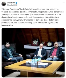 Bursaspor Başkanı Enes Çelik’in sosyal medya hesabın da yaptığı paylaşımı şöyle;