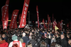 CHP Bursa İl Örgütü İstanbul Büyükşehir Belediye Başkanı ve partinin Cumhurbaşkanı adayı Ekrem İmamoğlu ve çalışma arkadaşlarının sabah saatlerinde gözaltına alınmasına akşam saatlerinde bir kez daha tepki gösterdi. Bursa Milletvekili-PM Üyesi Orhan Sarıbal, Osmangazi Belediye Başkanı Erkan Aydın, Gemlik Belediye Başkanı Şükrü Deviren, Mudanya Belediye Başkanı Deniz Dalgıç, İl Yöneticileri, İl Kadın-Gençlik Kolları Başkanları, İlçe Başkanları, çok sayıda partili ve yurttaşın katıldığı açıklamada konuşan CHP Bursa İl Başkanı Nihat Yeşiltaş, Türkiye Cumhuriyeti’nin demokrasi tarihine kara bir leke olarak yazılacağını ve dünyada eşi benzeri görülmemiş bir hukuksuzlukla karşı karşıya olduklarını söyledi.